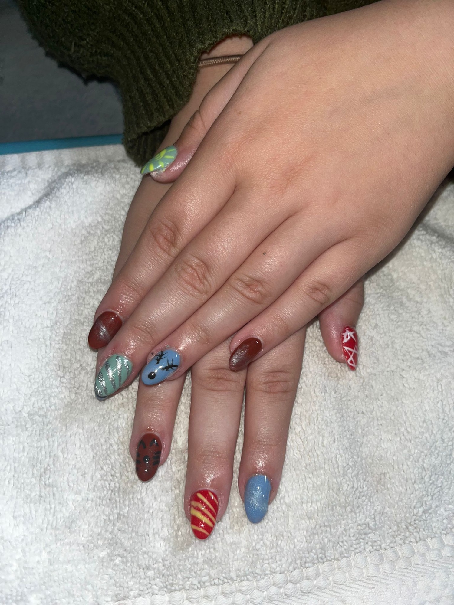 This photo gallery showcases my portfolio of nail designs, highlighting my creativity, attention to detail, and range of styles. Each set reflects my skill, technique, and passion for nail artistry, from classic looks to bold, custom designs. Together, these photos represent the quality of my work and my commitment to creating beautiful, personalised nails for every client.